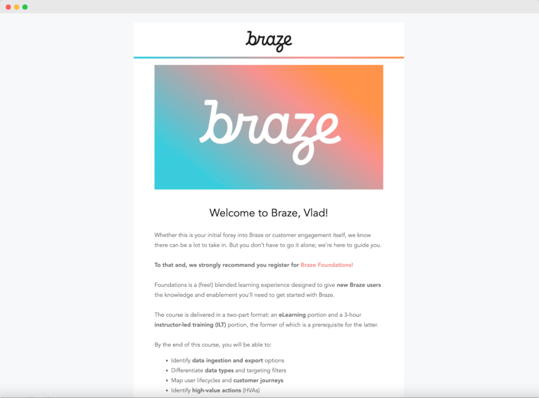 The email’s introduction highlights what the company does. It’s then immediately followed by recommended courses that might interest the recipient.